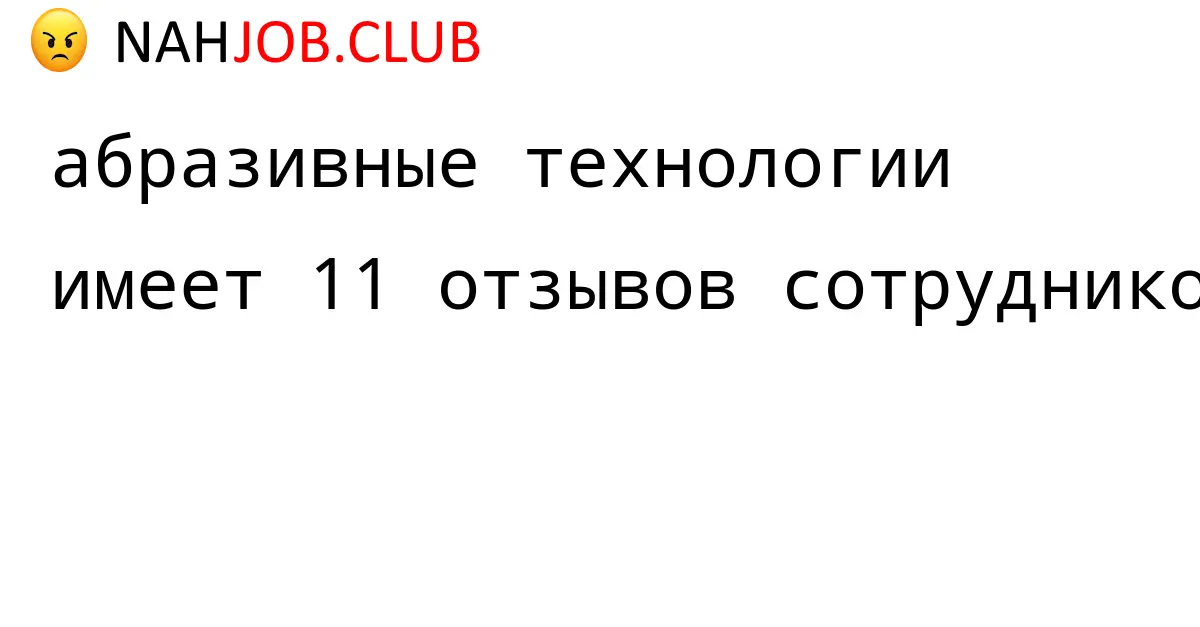 🔴 В базе Nahjob 2 отзыва и мнений бывших и действующих работников про АБРАЗИВНЫЕ ТЕХНОЛОГИИ по городу Сосновый Бор . Это реальные отклики про зп, атмосферу, штрафы.