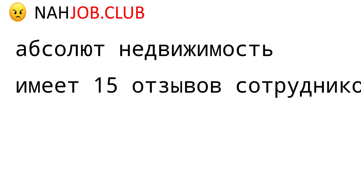 🔴 В базе Nahjob 2 отзыва и мнений бывших и действующих работников про АБСОЛЮТ НЕДВИЖИМОСТЬ по городу Мытищи . Это реальные отклики про зп, атмосферу, штрафы.