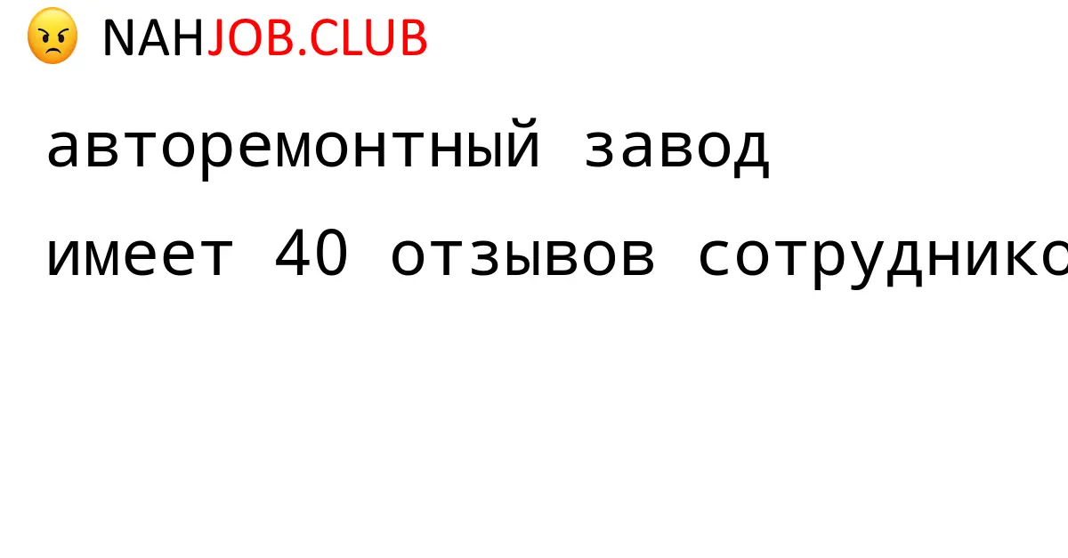 🔴 В базе Nahjob 40 отзывов и мнений бывших и действующих работников про АВТОРЕМОНТНЫЙ ЗАВОД. Это реальные отклики про зп, атмосферу, штрафы.