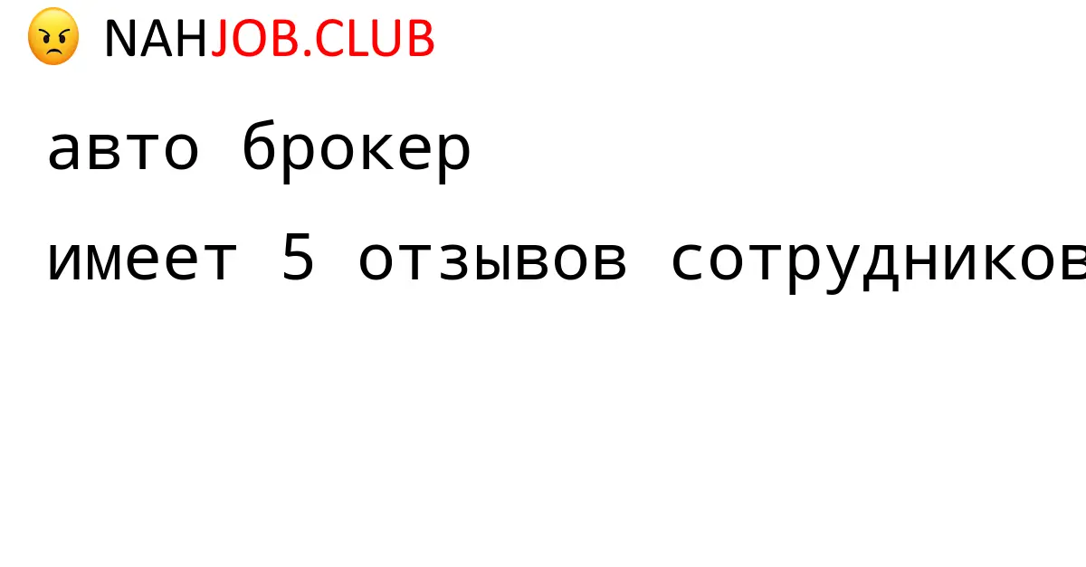 🔴 В базе Nahjob 5 отзывов и мнений бывших и действующих работников про АВТО БРОКЕР. Это реальные отклики про зп, атмосферу, штрафы.