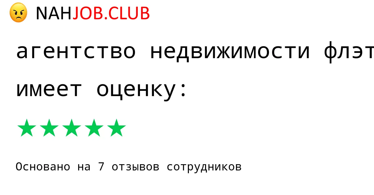 🔴 Мы собрали 1 отзыв бывших сотрудников про АГЕНТСТВО НЕДВИЖИМОСТИ ФЛЭТ по городу Москва . Это данные изнутри про зарплату, коллектив, штрафы.
