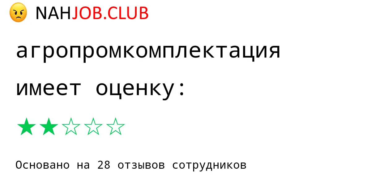 ✓ ПреимуществаБелая зп Далее →✗ НедостаткиПо агропромкомплектации хочется отметить следующее: Из хорошего, по моему мнению, это всегда своевременная выплата зарплаты. Адекватное и профессиональное руководство (финансы, проектное управление, директор [Д.] с которыми приятно иметь дело) и уровень их профессионализма достаточно высокий, и они зачастую изменяют эту компанию к лучшему (но у них не всегда это получается). Из плохого, по моему мнению, что кроме адекватных и профессиональных руководителей есть и те, у которых уровень профессионализма и адекватности не соответствует занимаемой должности. Например, хочу отметить заместителя генерального директора по правовым вопросам [Ю.], которая, по моему мнению, на фоне других руководителей очень слаба и можно сказать, тянет компанию вниз (систематизации в юр. департаменте нет — колхоз-менеджмент, ей главное выслужиться перед генеральным, по большому счету решая проблему, которая возникла из-за отсутствия системы, чаще всего из-за неё самой, так как проблему решают по мере её появления, в ручном режиме (только потому, что на проблему указал генеральный, смешно), но при этом юр. процессы не работают, как в других нормальных компаниях). Бедные её сотрудники в юридическом департаменте, не позавидую им (трудно работать под руководством человека, который не умеет разговаривать и формулировать задачи, нет системы в голове и своего личного профессионального мнения, не удивлюсь, если она орёт на подчинённых).... Далее →