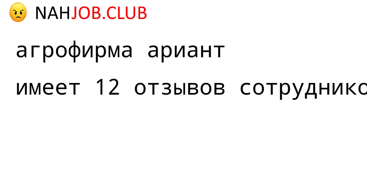 🔴 Изучаете вакансию наладчик компании АГРОФИРМА АРИАНТ? Почитайте 1 отзыв бывших сотрудников про работу по должности Наладчик в АГРОФИРМА АРИАНТ