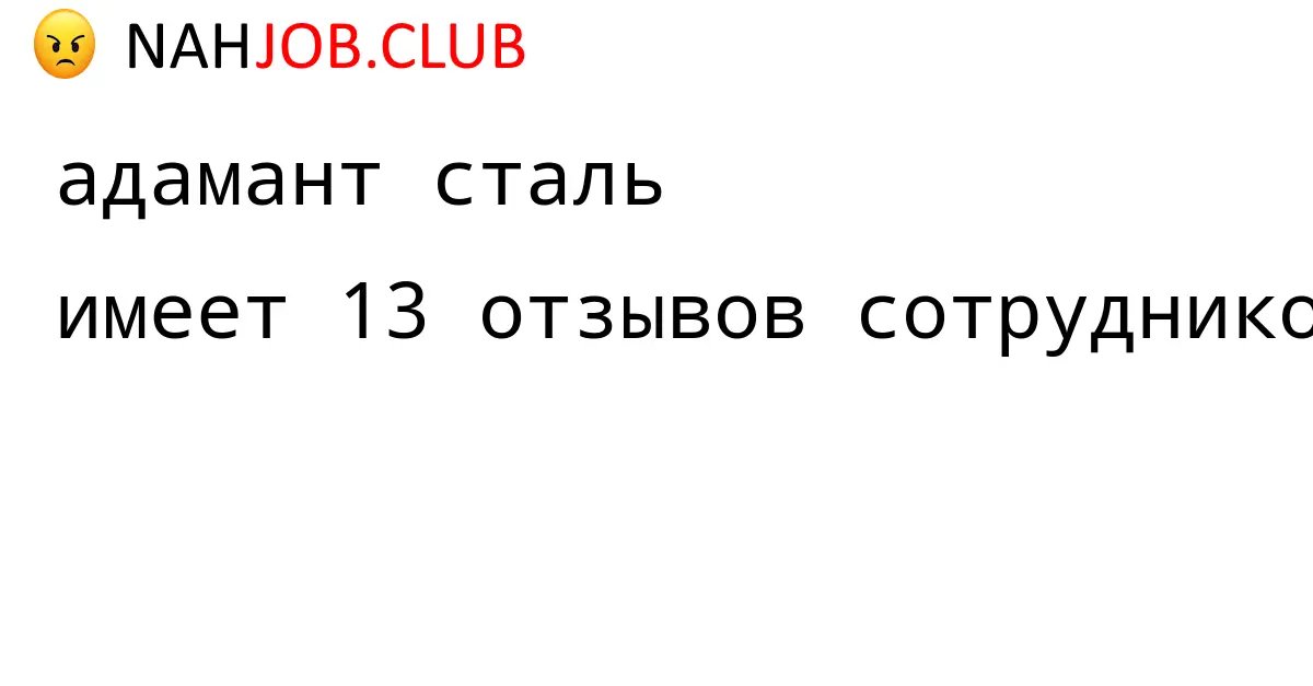 🔴 Изучаете вакансию Координатор менеджера компании АДАМАНТ СТАЛЬ? Почитайте 1 отзыв бывших сотрудников про работу по должности Координатор менеджера в АДАМАНТ СТАЛЬ