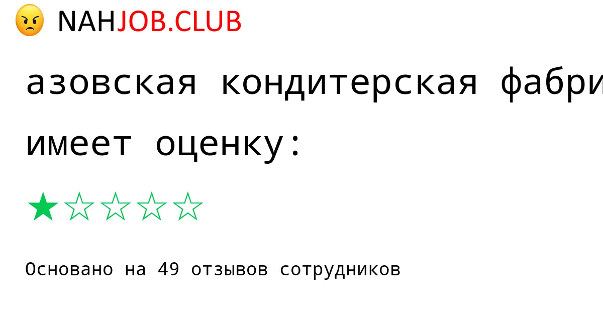 🔴 Изучаете вакансию менеджер по продажам компании АЗОВСКАЯ КОНДИТЕРСКАЯ ФАБРИКА? Почитайте 1 отзыв бывших сотрудников про работу по должности Менеджер по продажам в АЗОВСКАЯ КОНДИТЕРСКАЯ ФАБРИКА