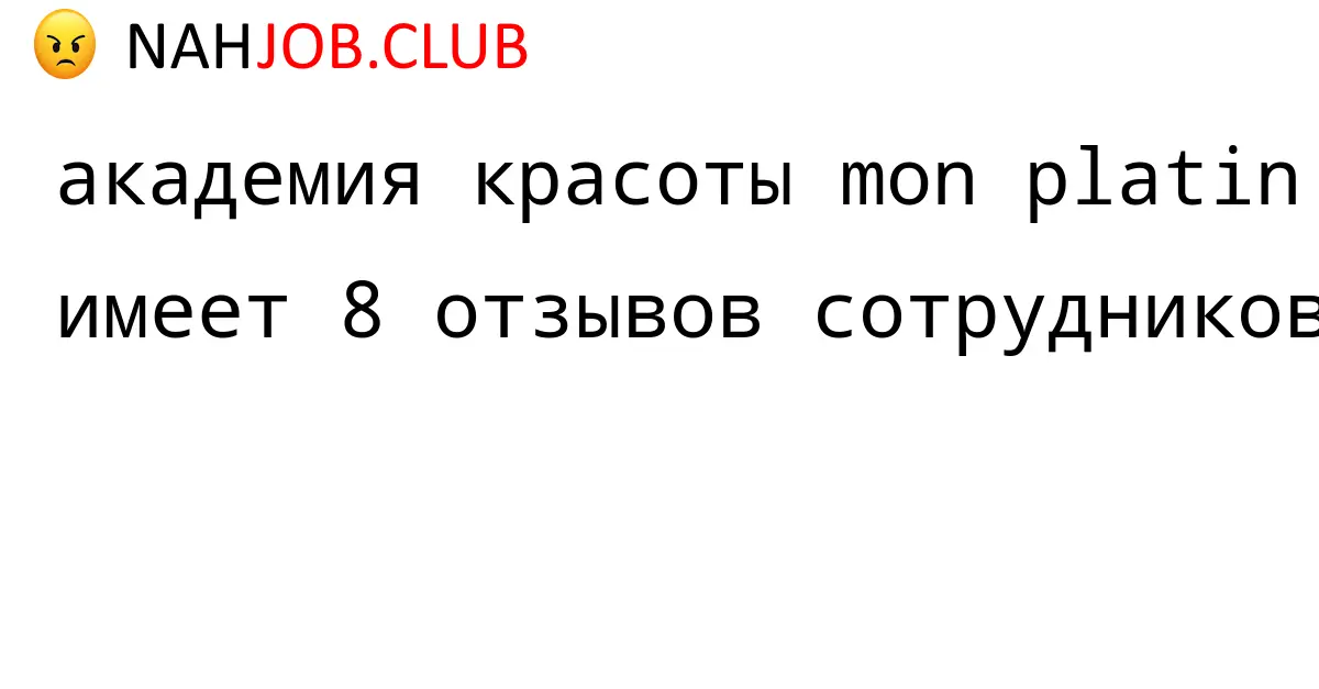 🔴 В базе Nahjob 1 отзыв и мнений бывших и действующих работников про АКАДЕМИЯ КРАСОТЫ MON PLATIN МОН ПЛАТИН по городу Красноярск . Это реальные отклики про зп, атмосферу, штрафы.