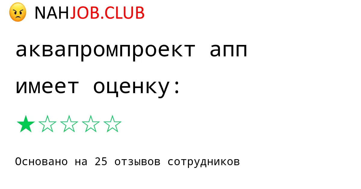 🔴 В списке 22 отзыва бывших работников про АКВАПРОМПРОЕКТ АПП по городу Санкт-Петербург с рейтингом 1 из 5 . Это искренние мнения про атмосферу, доходы, штрафы, отпуска.