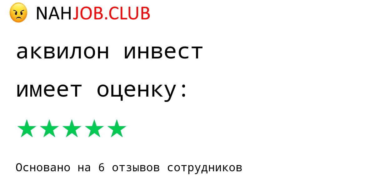 🔴 В базе Nahjob 6 отзывов и мнений бывших и действующих работников про АКВИЛОН ИНВЕСТ с рейтингом 5 из 5 . Это реальные отклики про зп, атмосферу, штрафы.
