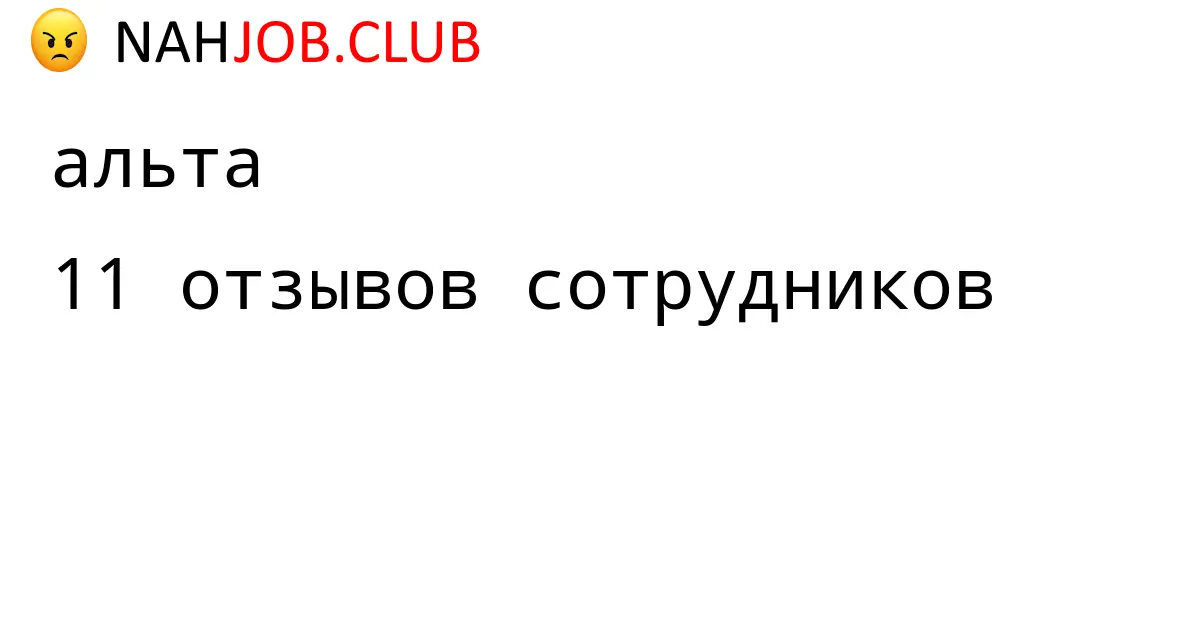 🔴 Мы собрали 11 отзывов бывших сотрудников про АЛЬТА по городу Воронеж . Это данные изнутри про зарплату, коллектив, штрафы.