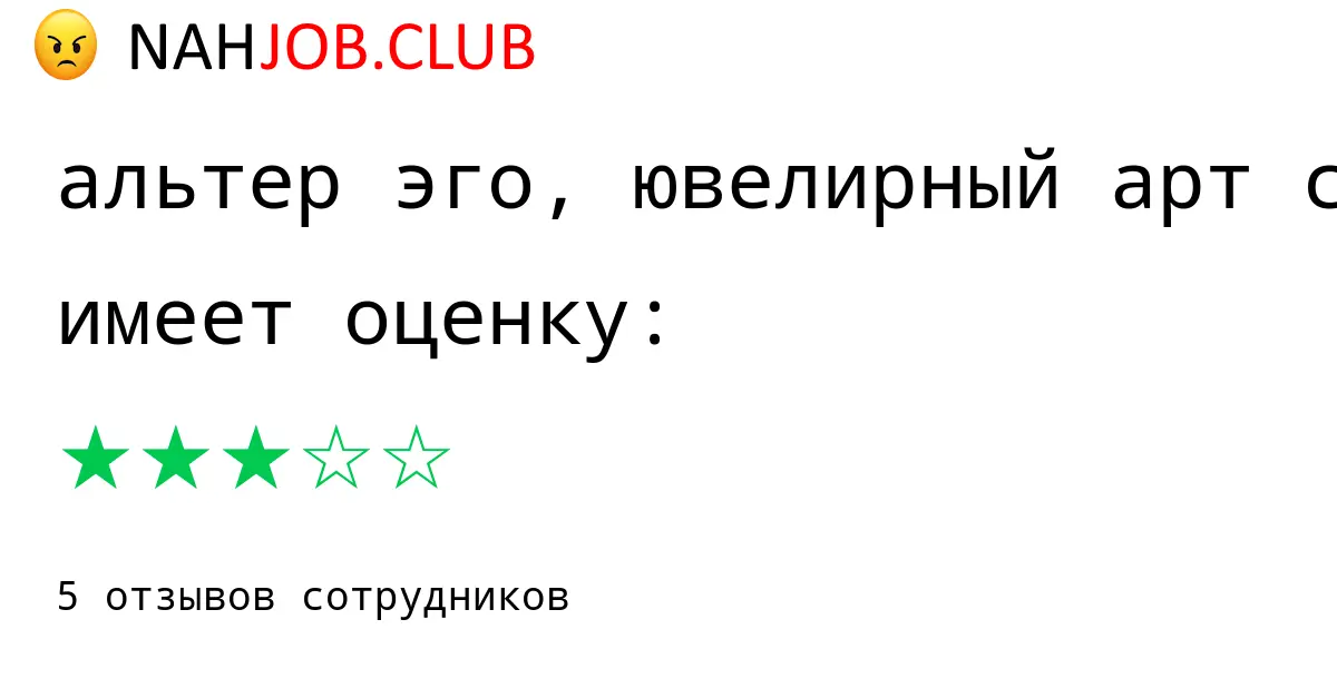 🔴 В списке 5 отзывов бывших работников про АЛЬТЕР ЭГО, ЮВЕЛИРНЫЙ АРТ САЛОН по городу Москва с рейтингом 3 из 5 . Это искренние мнения про атмосферу, доходы, штрафы, отпуска.