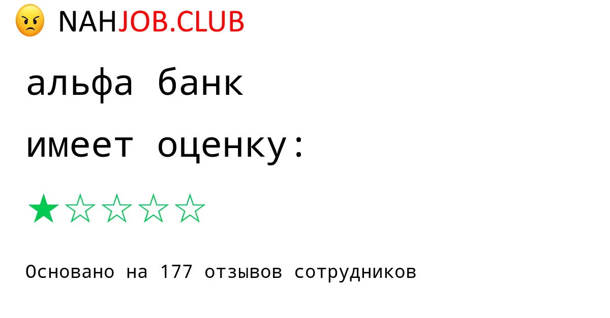 🔴 Мы собрали 1 отзыв бывших сотрудников про АЛЬФА БАНК по городу Чита . Это данные изнутри про зарплату, коллектив, штрафы.