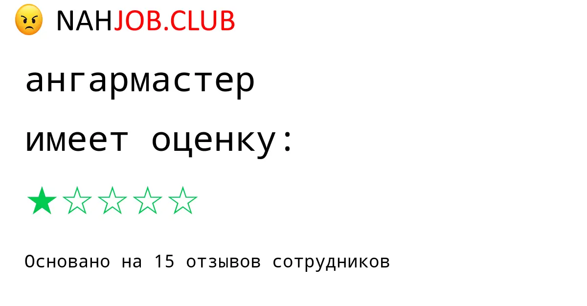 🔴 Мы собрали 1 отзыв бывших сотрудников про АНГАРМАСТЕР по городу Мариуполь с рейтингом 1 из 5 . Это данные изнутри про зарплату, коллектив, штрафы.