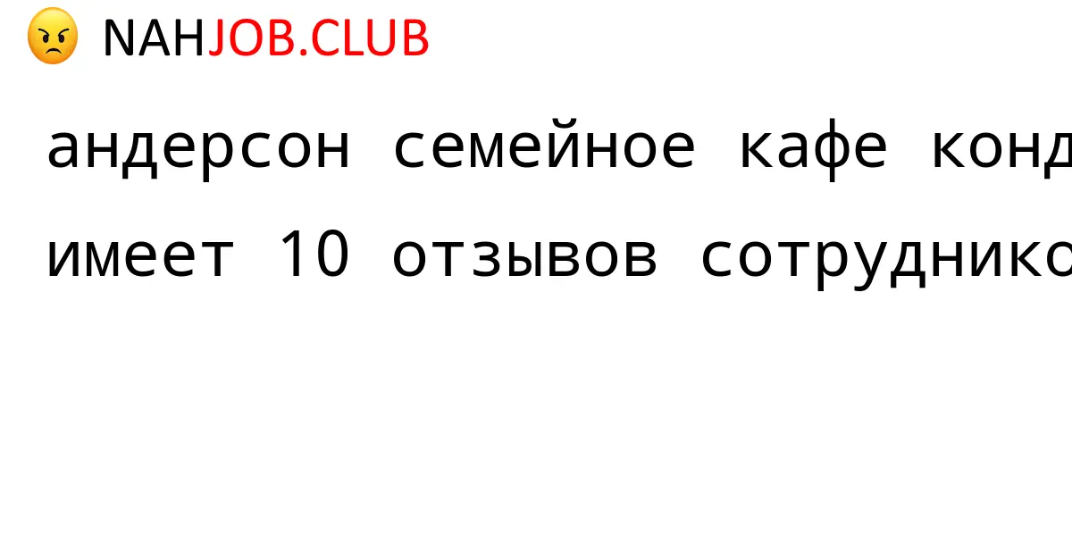 🔴 В списке 10 отзывов бывших работников про АНДЕРСОН СЕМЕЙНОЕ КАФЕ КОНДИТЕРСКАЯ по городу Москва . Это искренние мнения про атмосферу, доходы, штрафы, отпуска.