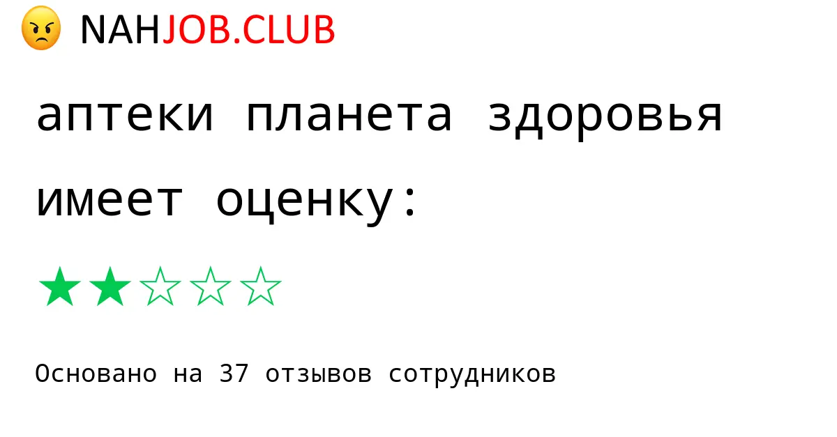 🔴 В списке 1 отзыв бывших работников про АПТЕКИ ПЛАНЕТА ЗДОРОВЬЯ по городу Пушкино с рейтингом 2 из 5 . Это искренние мнения про атмосферу, доходы, штрафы, отпуска.