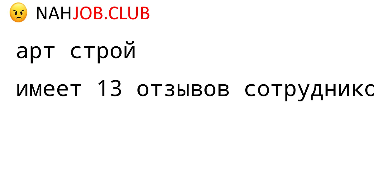 🔴 Мы собрали 4 отзыва бывших сотрудников про АРТ СТРОЙ по городу Москва . Это данные изнутри про зарплату, коллектив, штрафы.