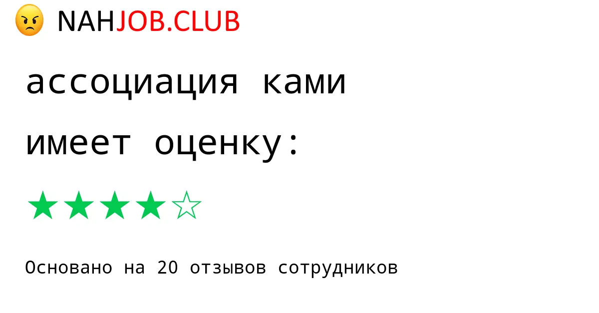 🔴 Мы собрали 20 отзывов бывших сотрудников про АССОЦИАЦИЯ КАМИ с рейтингом 4.4 из 5 . Это данные изнутри про зарплату, коллектив, штрафы.