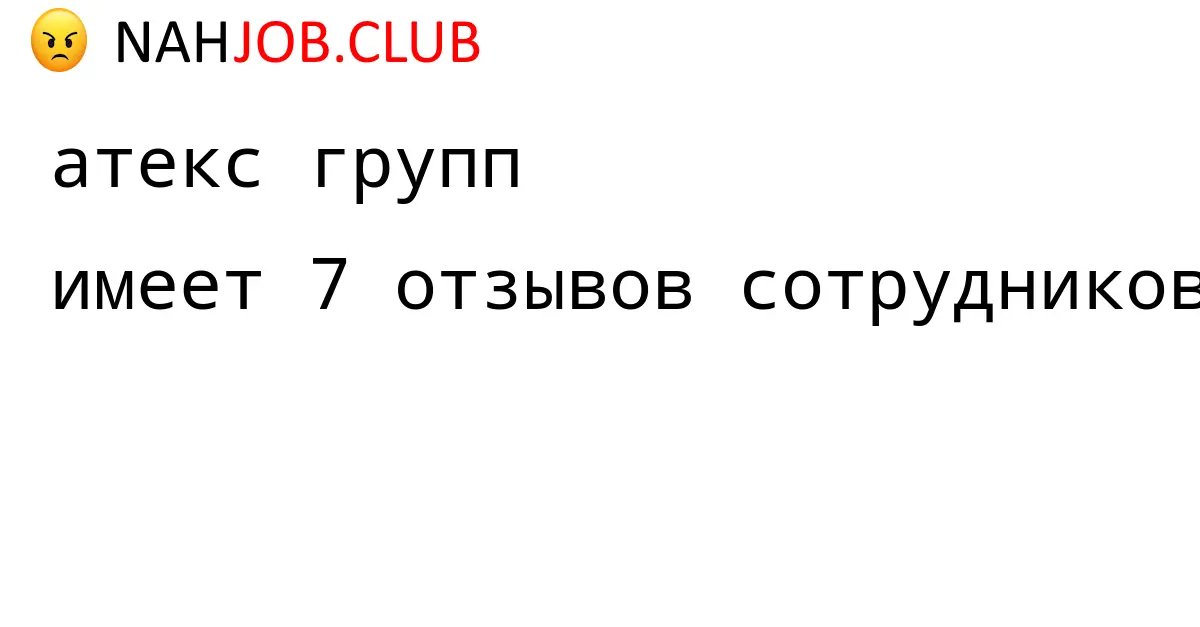 🔴 В базе Nahjob 1 отзыв и мнений бывших и действующих работников про АТЕКС ГРУПП по городу Екатеринбург . Это реальные отклики про зп, атмосферу, штрафы.