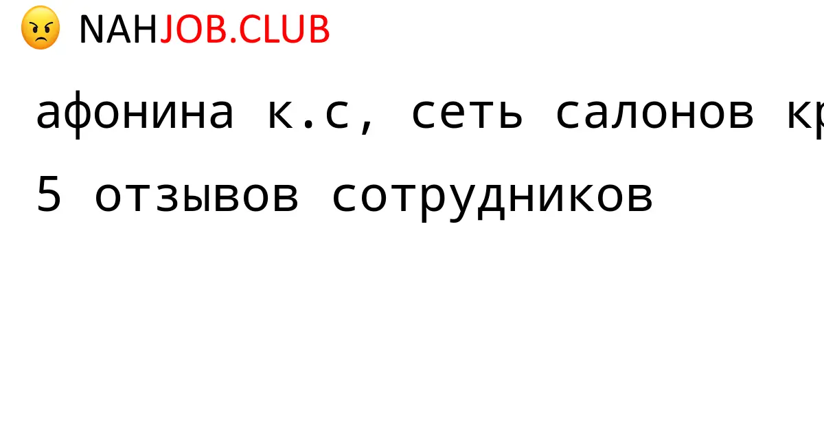 🔴 Изучаете вакансию администратор компании АФОНИНА К.С, СЕТЬ САЛОНОВ КРАСОТЫ NABS? Почитайте 1 отзыв бывших сотрудников про работу по должности Администратор в АФОНИНА К.С, СЕТЬ САЛОНОВ КРАСОТЫ NABS