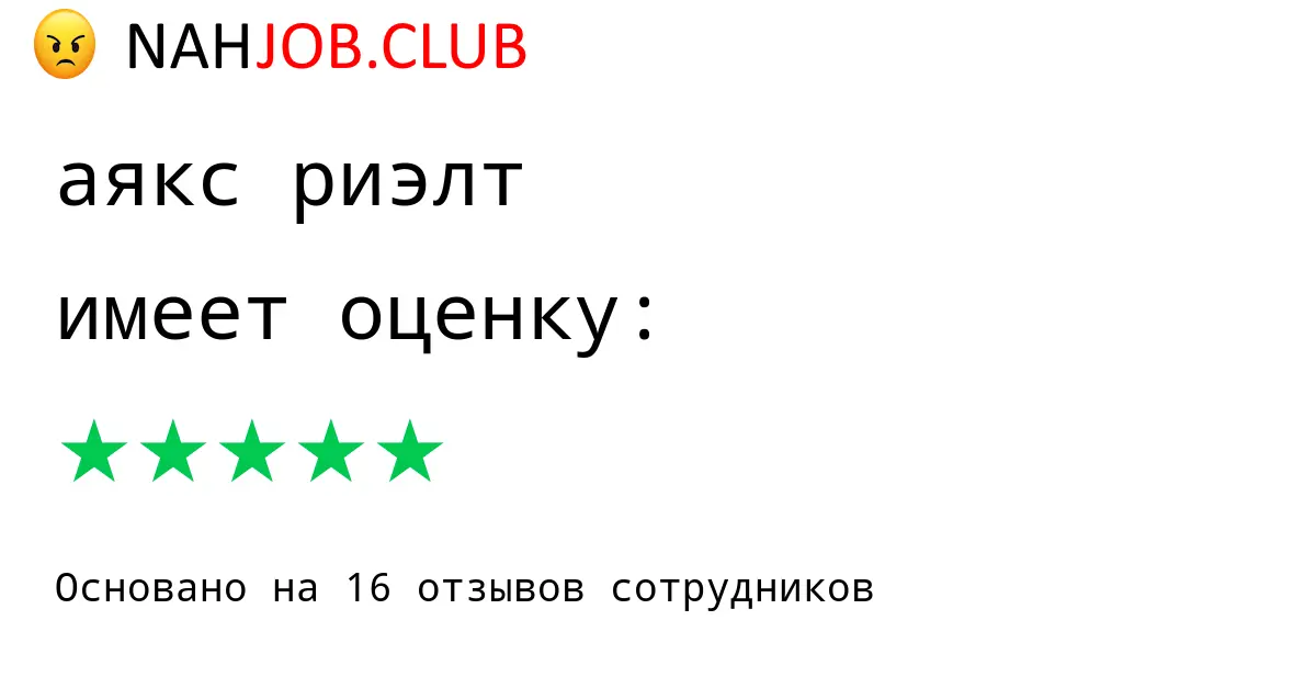 🔴 Мы собрали 3 отзыва бывших сотрудников про АЯКС РИЭЛТ по городу Москва с рейтингом 5 из 5 . Это данные изнутри про зарплату, коллектив, штрафы.