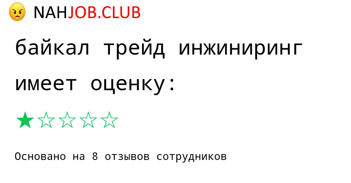 🔴 В базе Nahjob 8 отзывов и мнений бывших и действующих работников про БАЙКАЛ ТРЕЙД ИНЖИНИРИНГ по городу Иркутск с рейтингом 1 из 5 . Это реальные отклики про зп, атмосферу, штрафы.