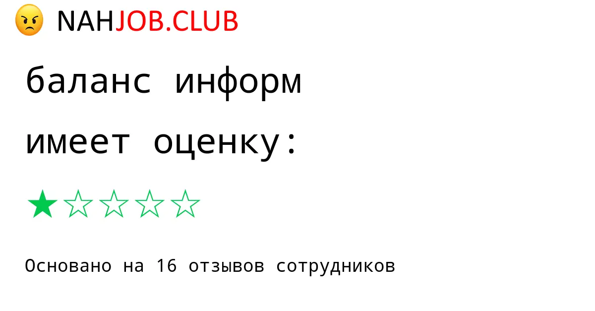 🔴 Изучаете вакансию менеджер компании БАЛАНС ИНФОРМ? Почитайте 1 отзыв бывших сотрудников про работу по должности Менеджер в БАЛАНС ИНФОРМ