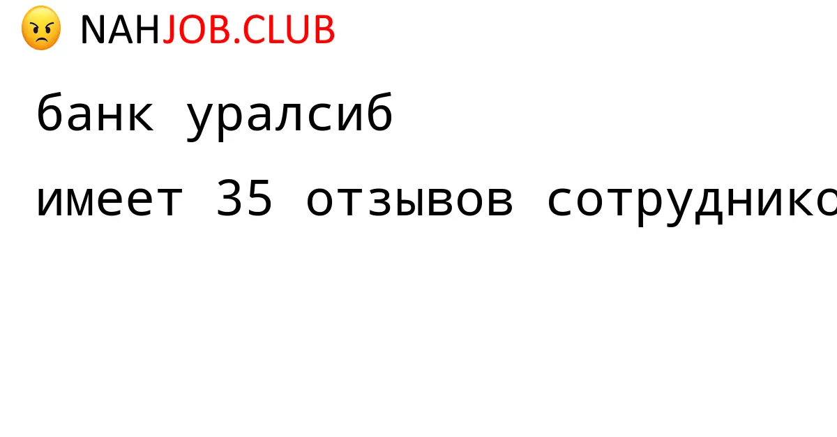 🔴 В базе Nahjob 35 отзывов и мнений бывших и действующих работников про БАНК УРАЛСИБ. Это реальные отклики про зп, атмосферу, штрафы.