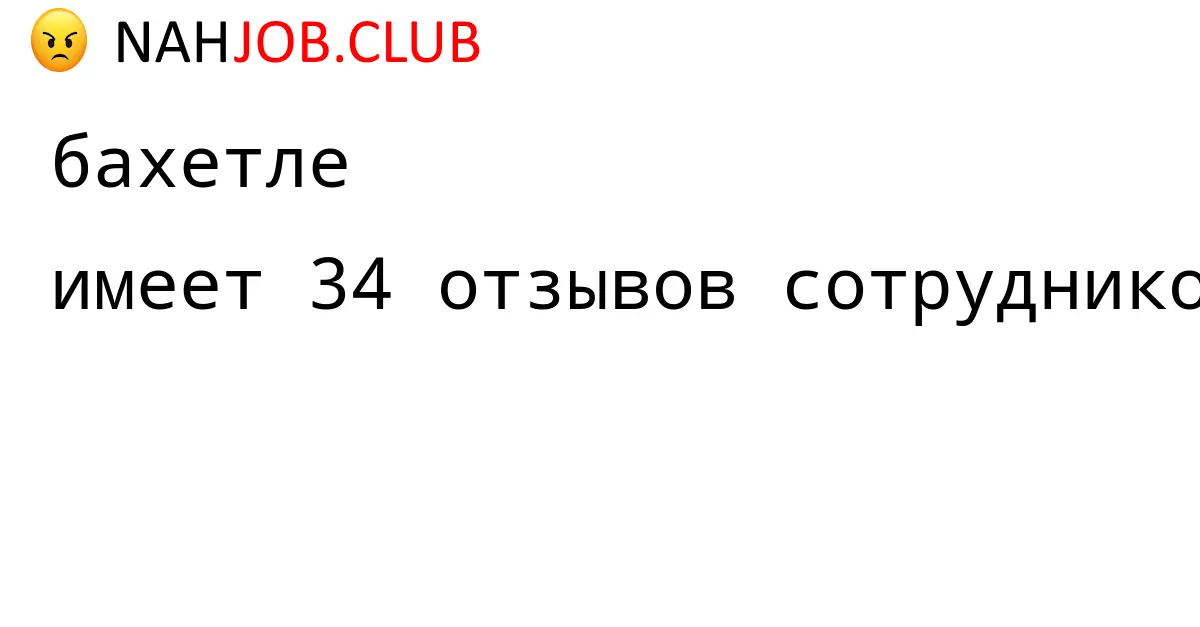🔴 В базе Nahjob 34 отзыва и мнений бывших и действующих работников про БАХЕТЛЕ. Это реальные отклики про зп, атмосферу, штрафы.
