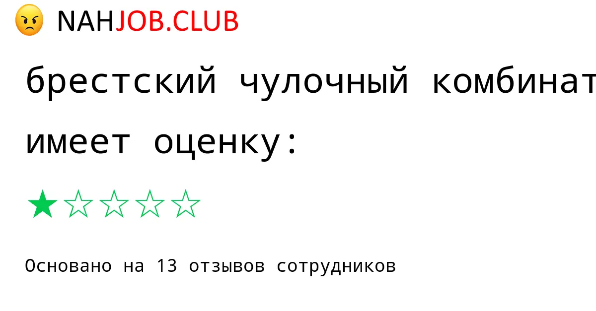 🔴 Изучаете вакансию продавец компании БРЕСТСКИЙ ЧУЛОЧНЫЙ КОМБИНАТ? Почитайте 1 отзыв бывших сотрудников про работу по должности Продавец в БРЕСТСКИЙ ЧУЛОЧНЫЙ КОМБИНАТ