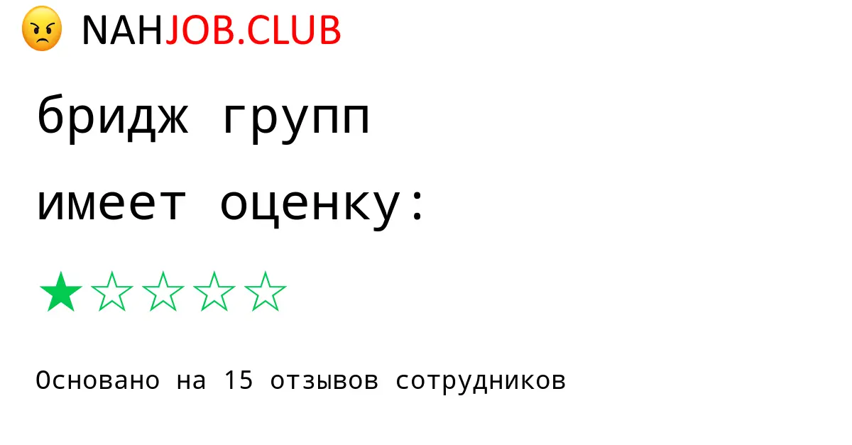 🔴 В базе Nahjob 15 отзывов и мнений бывших и действующих работников про БРИДЖ ГРУПП с рейтингом 1.5 из 5 . Это реальные отклики про зп, атмосферу, штрафы.