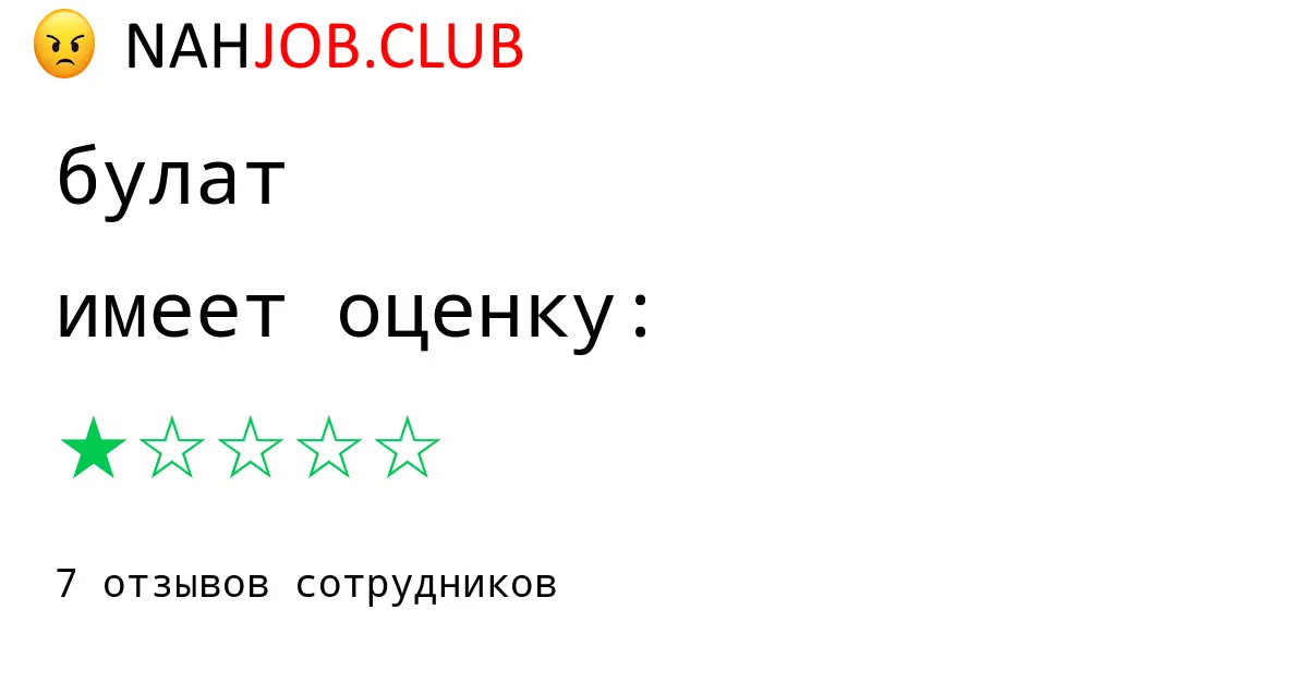 🔴 В списке 1 отзыв бывших работников про БУЛАТ по городу Тамбов . Это искренние мнения про атмосферу, доходы, штрафы, отпуска.