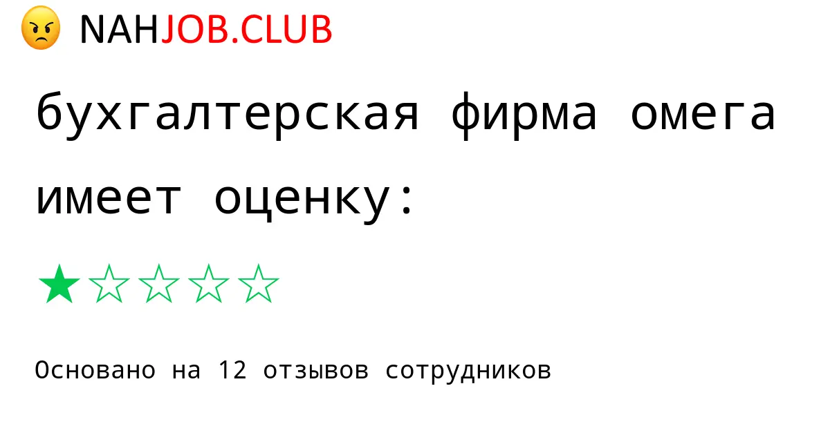 🔴 Изучаете вакансию Анонимный сотрудник компании БУХГАЛТЕРСКАЯ ФИРМА ОМЕГА? Почитайте 10 отзывов бывших сотрудников про работу по должности Анонимный сотрудник в БУХГАЛТЕРСКАЯ ФИРМА ОМЕГА