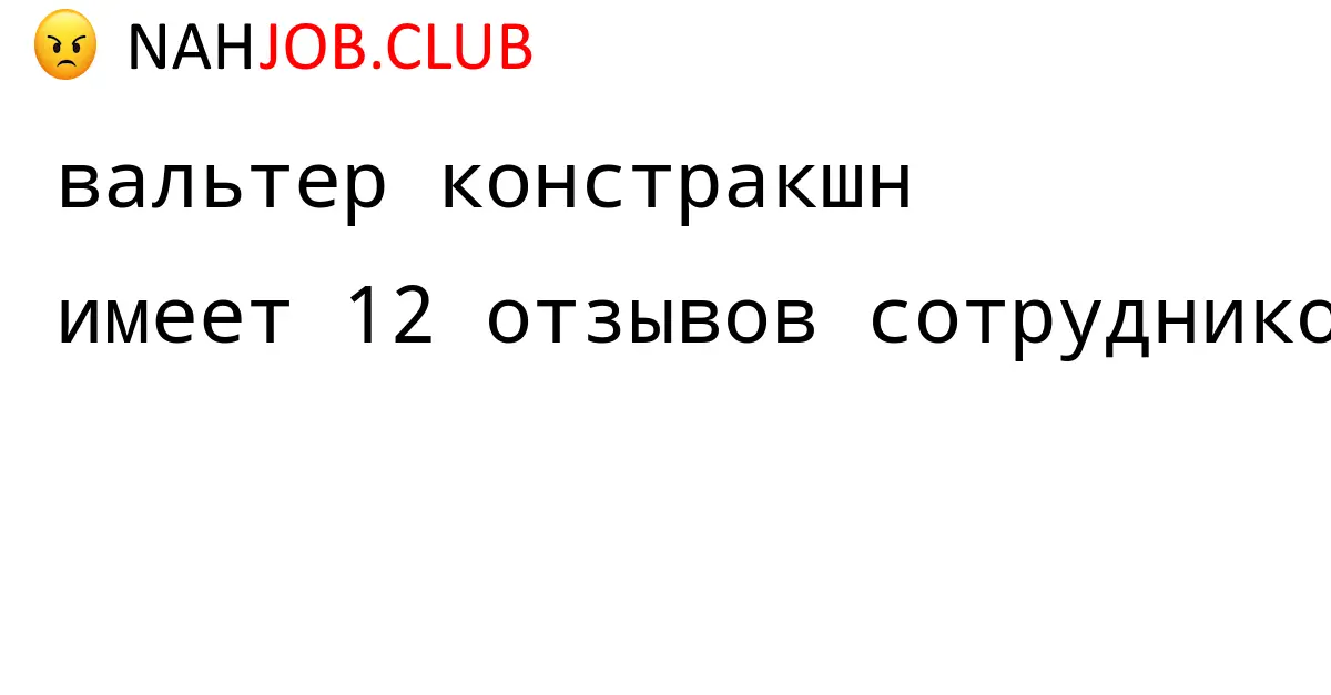 Работали в ВАЛЬТЕР КОНСТРАКШН? Накипело? Расскажите правду! Добавить отзыв