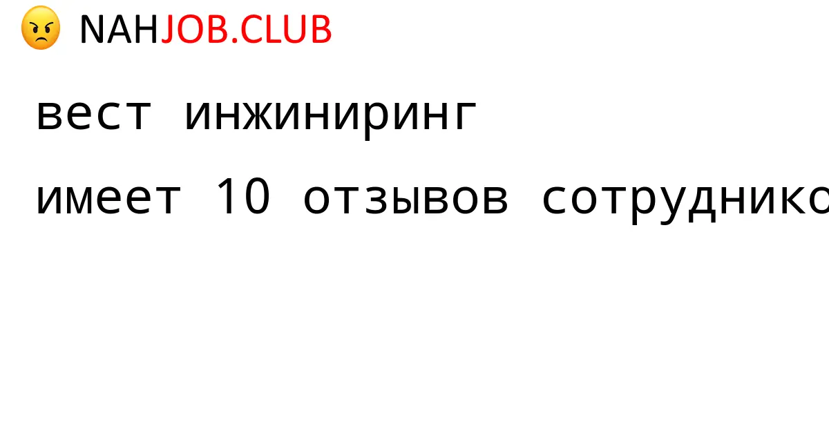 🔴 Изучаете вакансию Бывший сотрудник компании ВЕСТ ИНЖИНИРИНГ? Почитайте 1 отзыв бывших сотрудников про работу по должности Бывший сотрудник в ВЕСТ ИНЖИНИРИНГ