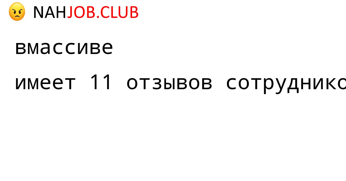 🔴 Мы собрали 1 отзыв бывших сотрудников про ВМАССИВЕ по городу Котельники . Это данные изнутри про зарплату, коллектив, штрафы.