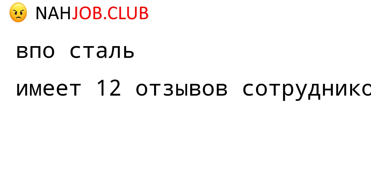 🔴 Мы собрали 12 отзывов бывших сотрудников про ВПО СТАЛЬ по городу Москва . Это данные изнутри про зарплату, коллектив, штрафы.