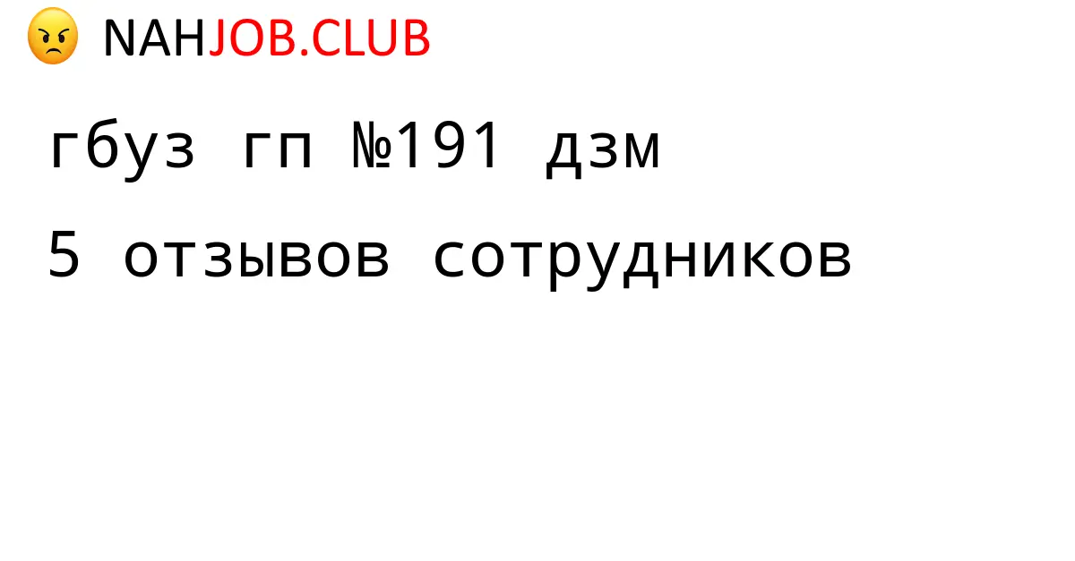 🔴 Изучаете вакансию врач компании ГБУЗ ГП №191 ДЗМ? Почитайте 1 отзыв бывших сотрудников про работу по должности Врач в ГБУЗ ГП №191 ДЗМ