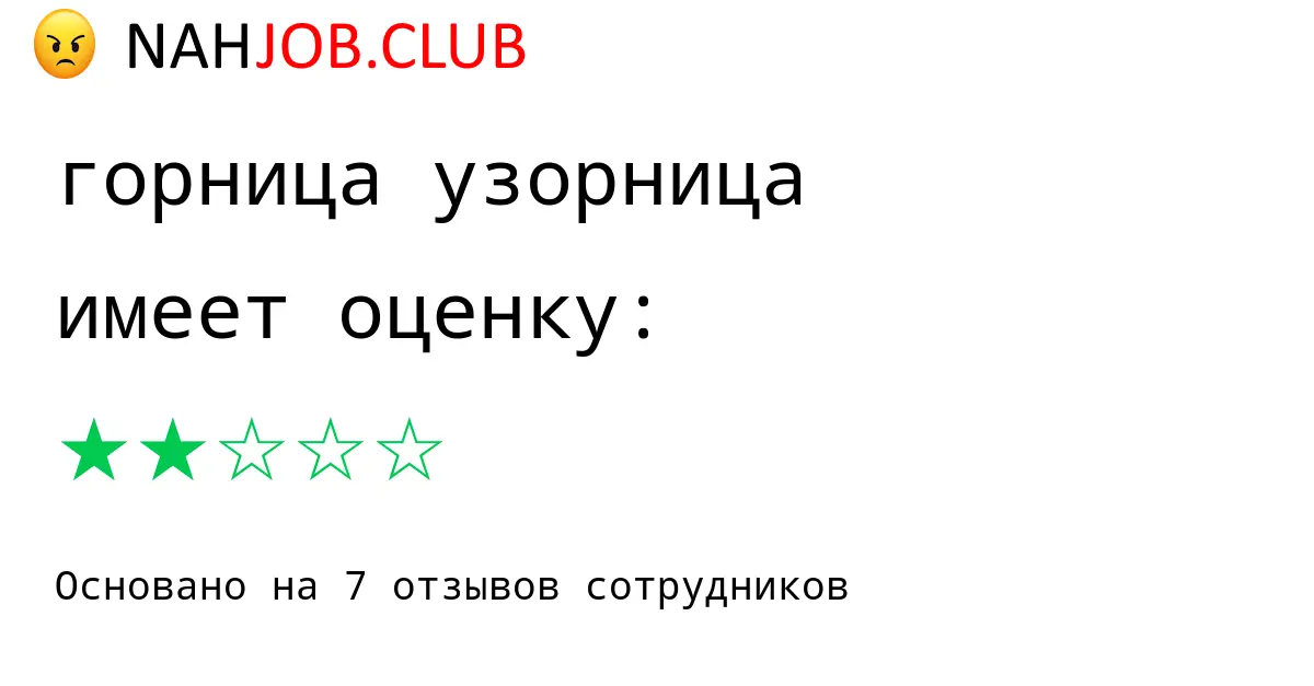 🔴 Изучаете вакансию Помощник воспитателя компании ГОРНИЦА УЗОРНИЦА? Почитайте 1 отзыв бывших сотрудников про работу по должности Помощник воспитателя в ГОРНИЦА УЗОРНИЦА