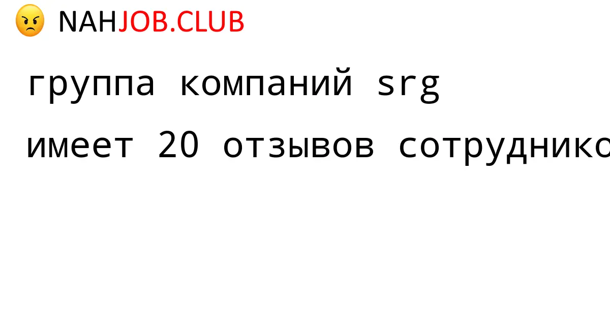 🔴 Изучаете вакансию SMM-менеджер компании ГРУППА КОМПАНИЙ SRG? Почитайте 1 отзыв бывших сотрудников про работу по должности SMM-менеджер в ГРУППА КОМПАНИЙ SRG