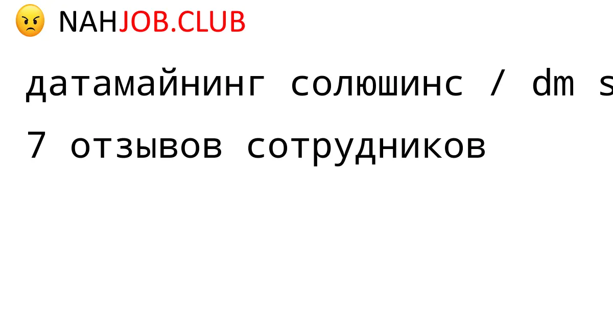 🔴 Мы собрали 7 отзывов бывших сотрудников про ДАТАМАЙНИНГ СОЛЮШИНС / DM SOLUTIONS по городу Москва . Это данные изнутри про зарплату, коллектив, штрафы.