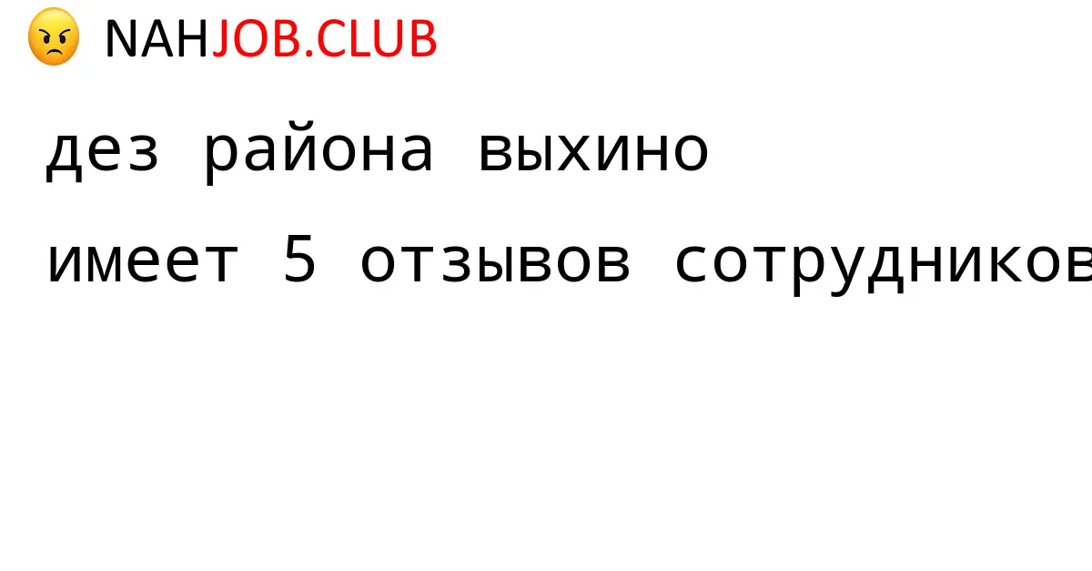 🔴 В базе Nahjob 5 отзывов и мнений бывших и действующих работников про ДЕЗ РАЙОНА ВЫХИНО по городу Москва . Это реальные отклики про зп, атмосферу, штрафы.