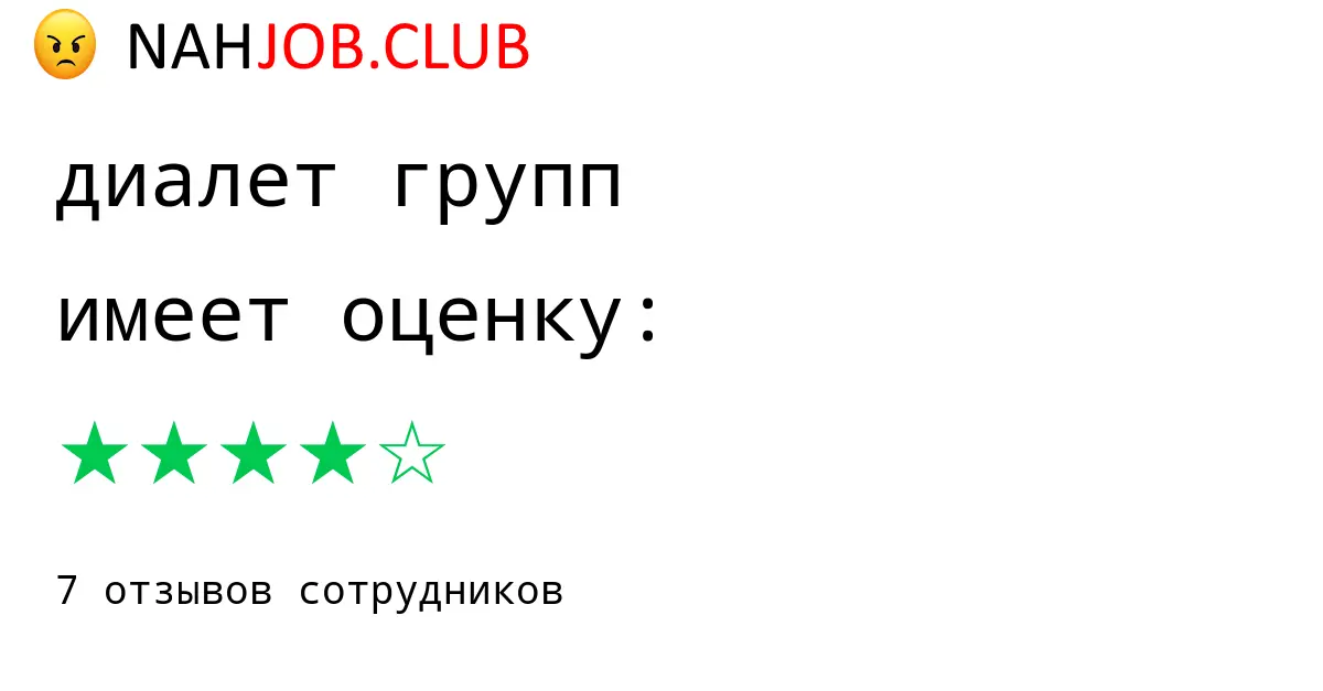 🔴 В списке 7 отзывов бывших работников про ДИАЛЕТ ГРУПП по городу Санкт-Петербург с рейтингом 4 из 5 . Это искренние мнения про атмосферу, доходы, штрафы, отпуска.