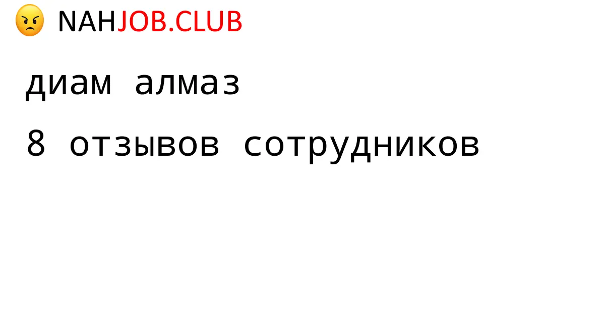 🔴 В списке 8 отзывов бывших работников про ДИАМ АЛМАЗ по городу Москва . Это искренние мнения про атмосферу, доходы, штрафы, отпуска.