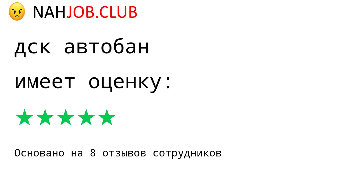 🔴 В базе Nahjob 8 отзывов и мнений бывших и действующих работников про ДСК АВТОБАН с рейтингом 5 из 5 . Это реальные отклики про зп, атмосферу, штрафы.