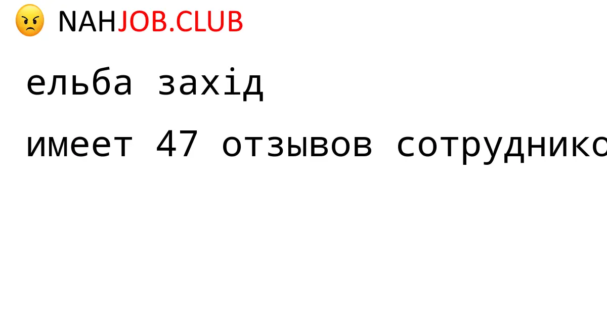 🔴 Мы собрали 1 отзыв бывших сотрудников про ЕЛЬБА ЗАХІД по городу Ровно . Это данные изнутри про зарплату, коллектив, штрафы.