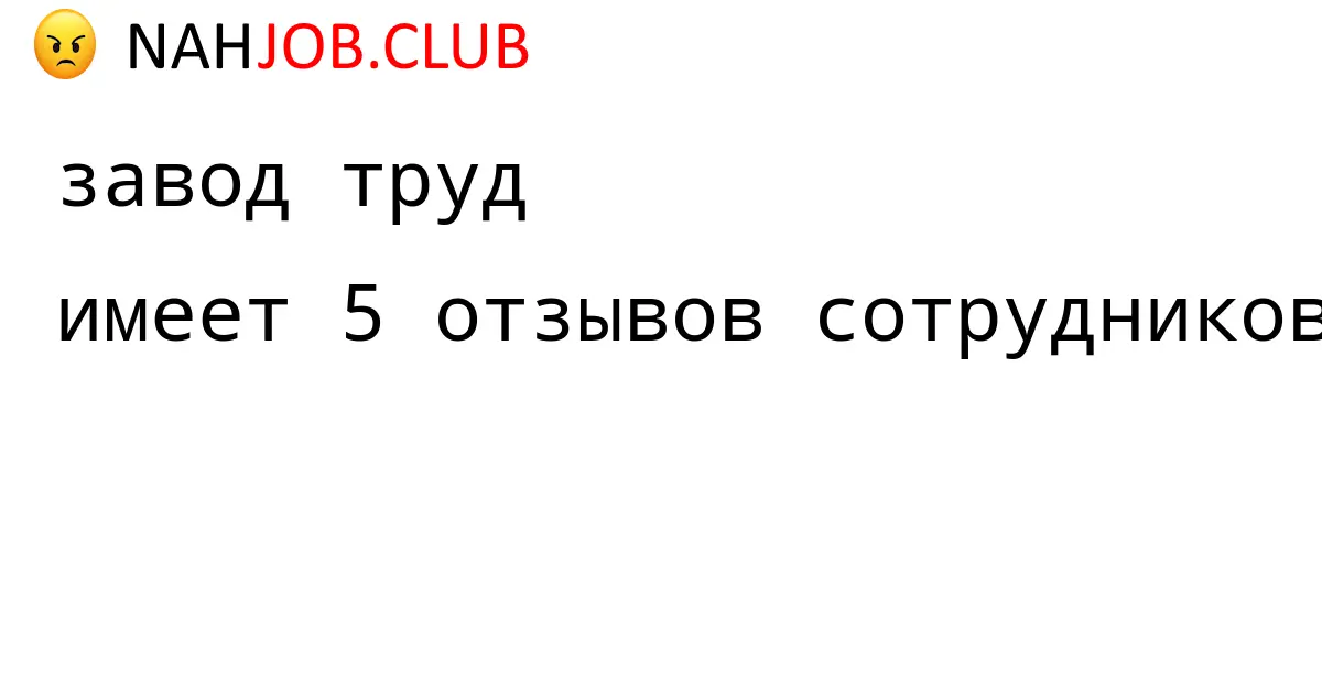 🔴 В базе Nahjob 4 отзыва и мнений бывших и действующих работников про ЗАВОД ТРУД по городу Нижний Новгород . Это реальные отклики про зп, атмосферу, штрафы.