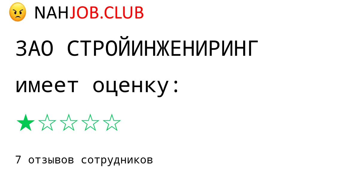 🔴 Изучаете вакансию ведущий инженер компании СТРОЙИНЖЕНИРИНГ? Почитайте 1 отзыв бывших сотрудников про работу по должности Ведущий инженер в СТРОЙИНЖЕНИРИНГ