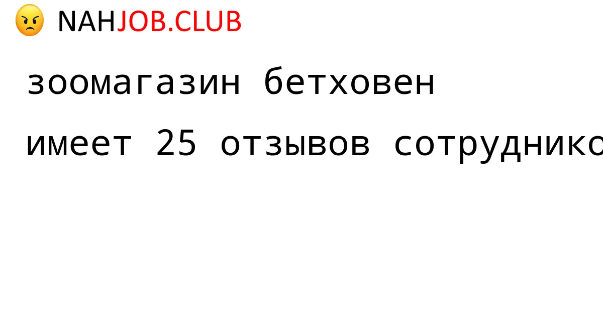 🔴 Изучаете вакансию администратор компании ЗООМАГАЗИН БЕТХОВЕН? Почитайте 1 отзыв бывших сотрудников про работу по должности Администратор в ЗООМАГАЗИН БЕТХОВЕН