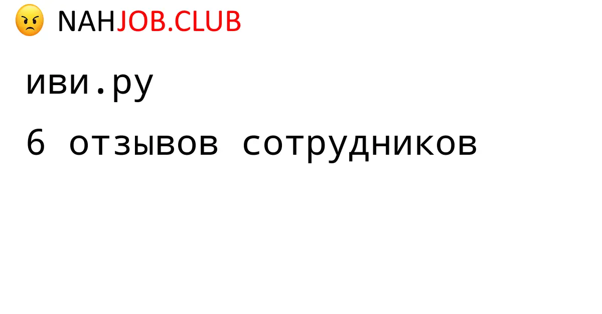 🔴 В базе Nahjob 1 отзыв и мнений бывших и действующих работников про ИВИ.РУ по городу Ижевск . Это реальные отклики про зп, атмосферу, штрафы.