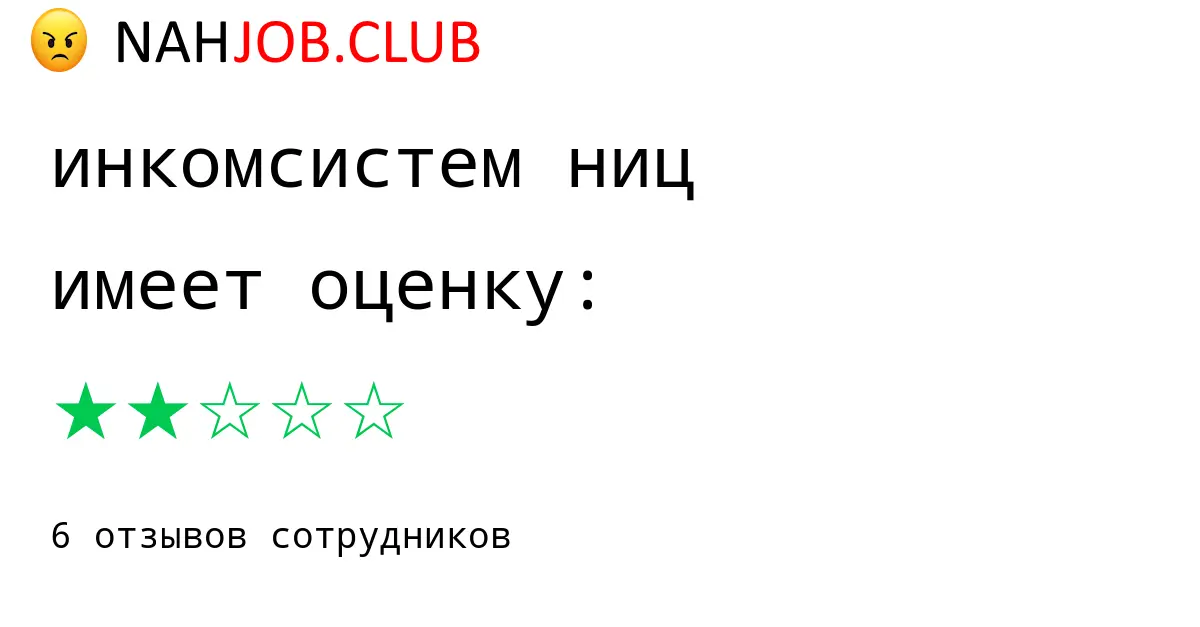 🔴 Изучаете вакансию Аноним компании ИНКОМСИСТЕМ НИЦ? Почитайте 1 отзыв бывших сотрудников про работу по должности Аноним в ИНКОМСИСТЕМ НИЦ