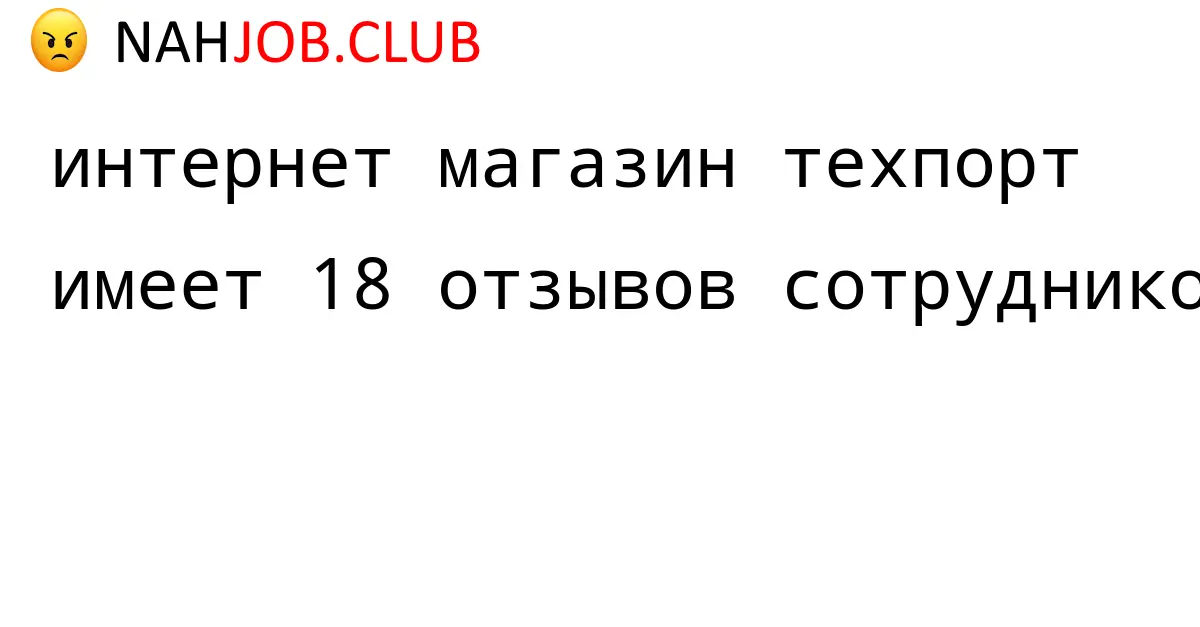 🔴 В списке 2 отзыва бывших работников про ИНТЕРНЕТ МАГАЗИН ТЕХПОРТ по городу Калуга . Это искренние мнения про атмосферу, доходы, штрафы, отпуска.